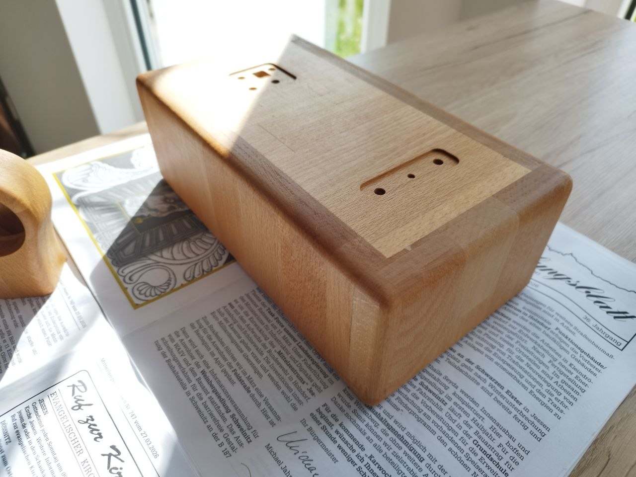 Elektrisch funktionierte die Uhr nun einwandfrei – wie schon bei früheren Projekten blieb allerdings das Thema Gehäuse erst einmal liegen. Nach rund 20 Jahren wurde es dann aber doch Zeit, der Uhr ein passendes Zuhause zu spendieren :-).